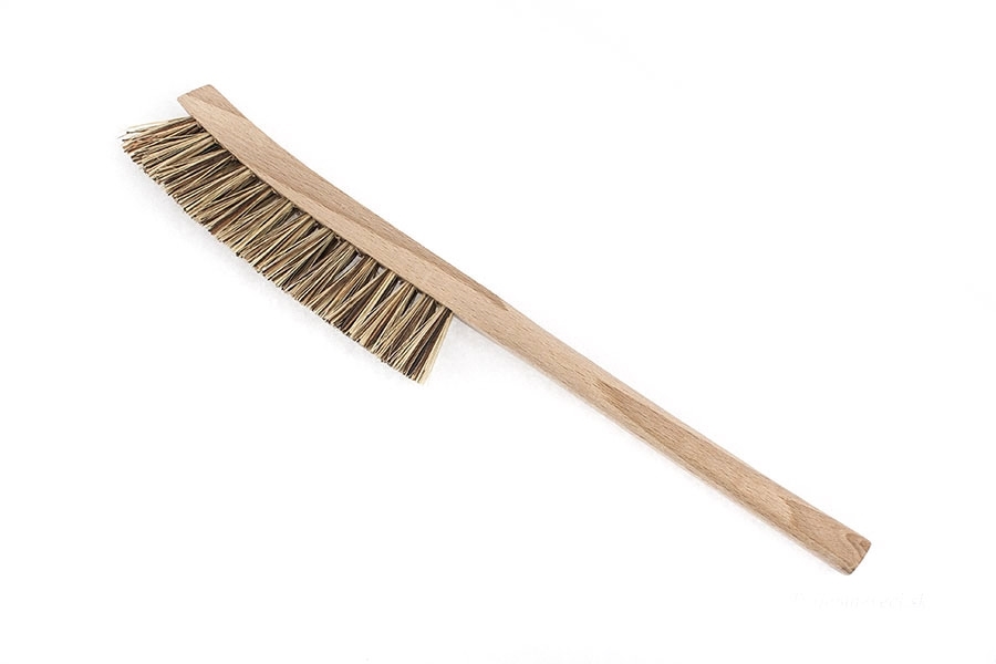 Velmi tvrdý úzký kartáč s rukojetí - i na odolnou špínu. Z přírodních materiálů – dřevo a rostlinné štětiny.