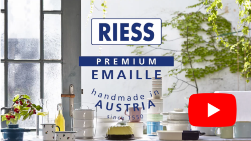 Smaltované nádobí RIESS je vyráběno šetrně a ručně v továrně ve městě Ybbsitz v Rakousku. Proces výroby je CO2 neutrální, protože se používá zelená energie ze 3 městských vodních elektráren.