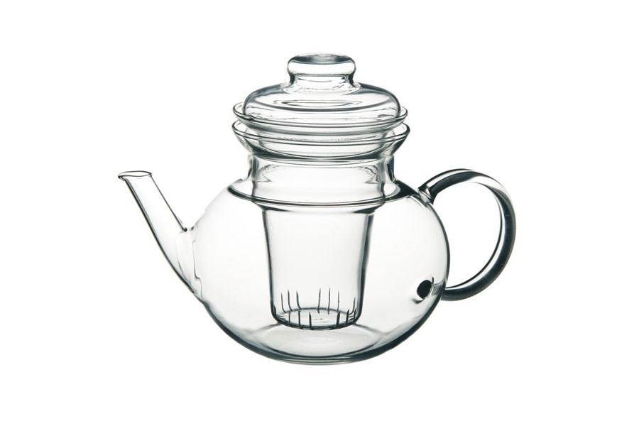Elegantní skleněná konvice s výlevkou a se skleněným sítkem pro milovníky čajů.
