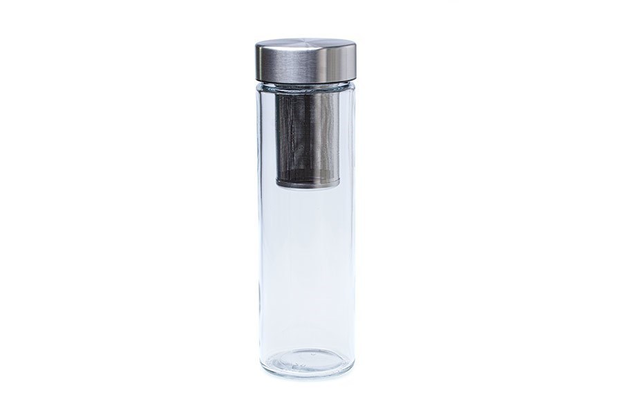 Skleněná láhev Simax Pure Aqua je vhodná pro sycené i nesycené nápoje, vodu, džus i smoothie. Do kovového sítka si můžete dát vyluhovat bylinky či citron. Díky hrubšímu sklu v ní vydrží déle teplý i horký nápoj. Víčko je na závit.