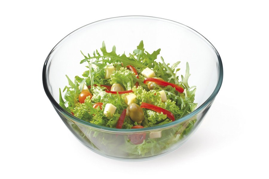 Skleněná mísa na saláty, servírování polévek či hnětení těsta. Také na různé jiné pokrmy. :-) S průměrem 27cm. Sklo je snadné na údržbu, dobře vypadá a je nezávadné při styku s potravinami.