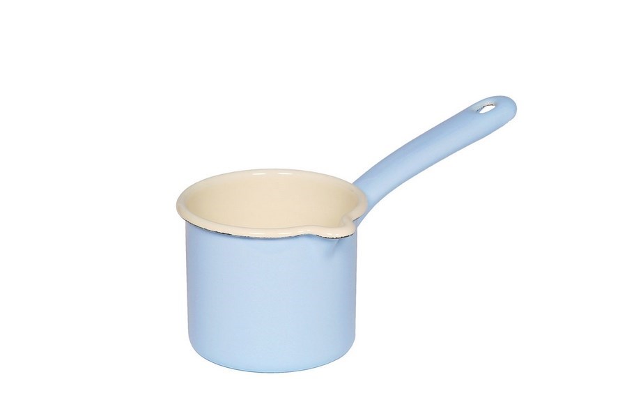 Smaltovaná konvička pro zahřívání mléka a jiných tekutin. Díky „zobáčku“ se tekutiny z konvičky snadno vylévají. Vhodná na všechny typy vařičů.