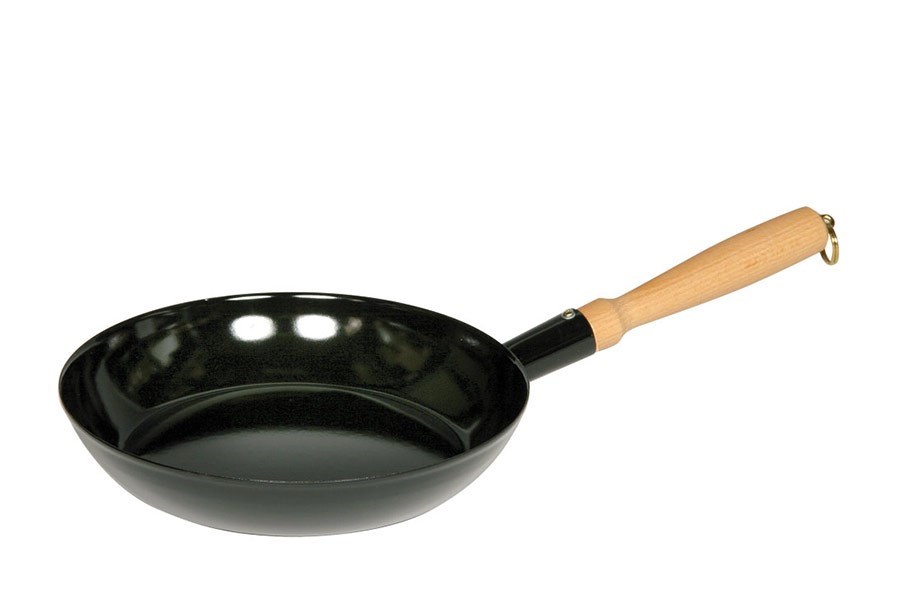 Univerzální smaltovaná pánev s dřevěnou rukojetí vhodná na smažení, dušení, servírování,... V různých barevných provedeních - cena se může lišit v závislosti na designu.
