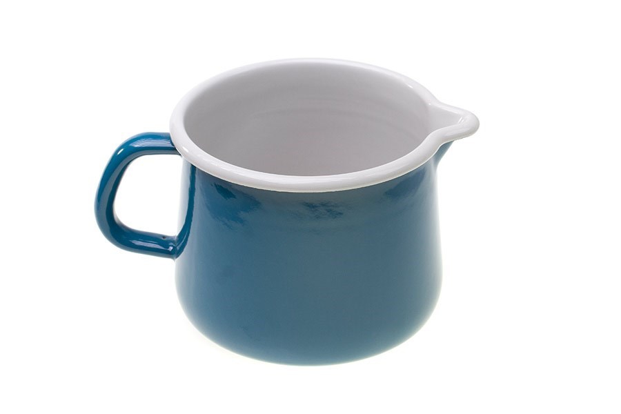 Smaltovaný džbánek se zobáčkem je stále oblíbeným kuchyňským náčiním pro různé účely.