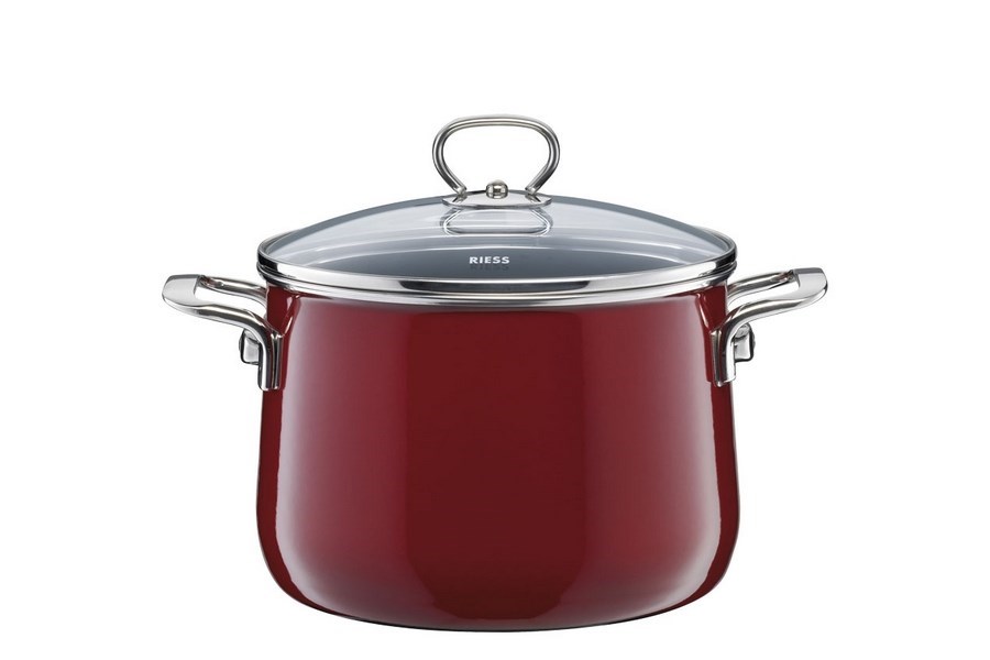 Smaltovaný hrnec je vybaven skleněnou poklicí, abyste měli přehled o připravovaném jídle. Ergonomicky tvarované rukojeti na hrnci i na poklici jsou z nerezavějící oceli. V různých barevných provedeních - cena se může lišit v závislosti na designu.