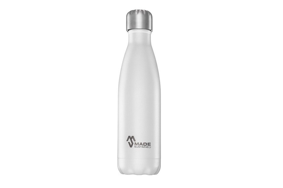 Láhev z nerezové oceli v matně bílém provedení, která je odolnější proti poškrábání, o objemu 500ml. Víčko má závit a neobsahuje žádnou plastovou část, pouze silikonové těsnění.