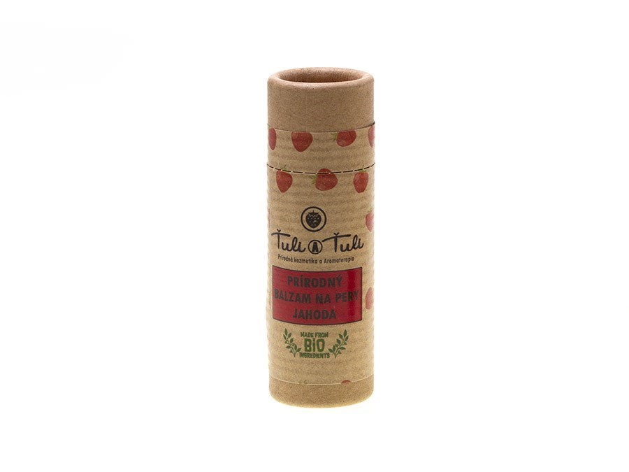 Přírodní kosmetika slovenské výroby. Balzám ošetřuje a zároveň chrání jemnou pokožku rtů před vnějšími vlivy. S jemným aroma - lesní jahoda. Balzám je balen v tubičce z recyklovaného papíru.